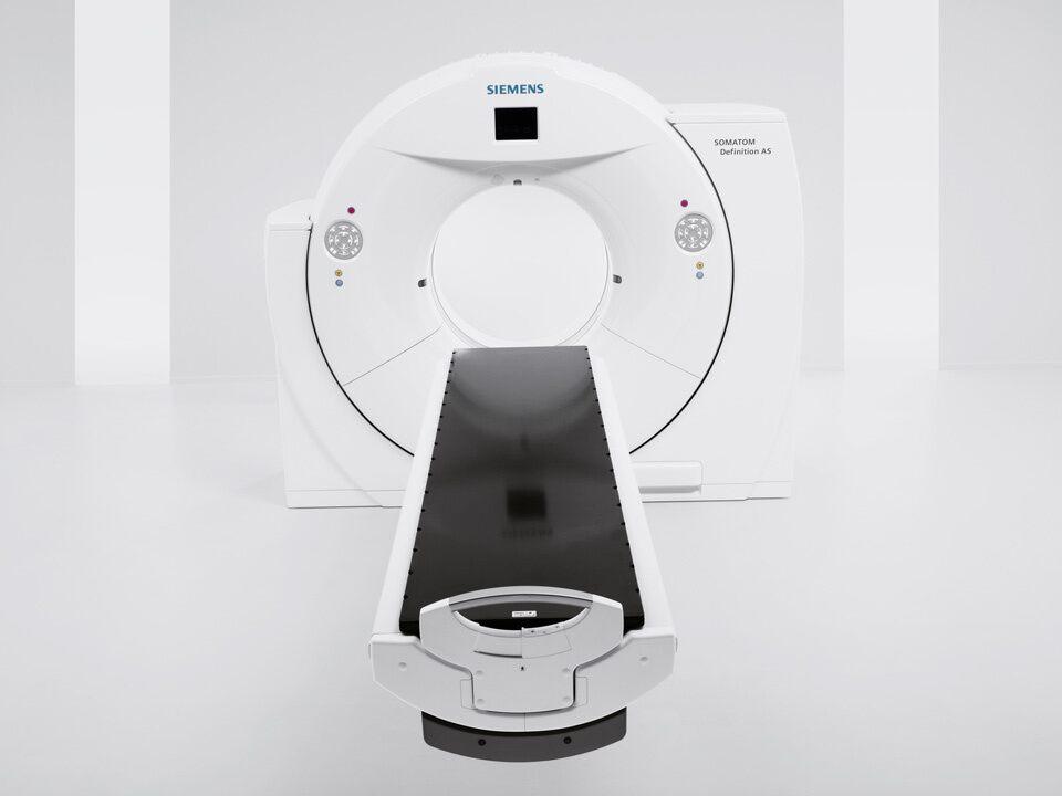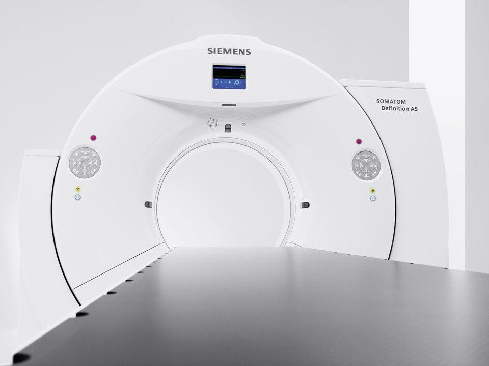 Siemens SOMATOM Definition Flash - компьютерный томограф с двумя рентгеновскими излучателями для экспертных и кардиологических исследований. Используя две рентгеновские трубки одновременно позволяет дифференцировать очаговые, сосудистые поражения без нативного сканирования: с помощью программного обеспечения из одной выполненной серии с контрастным усилением получаем бесконтрастные изображения и КТ-ангиографию с вычитанием костных структур.